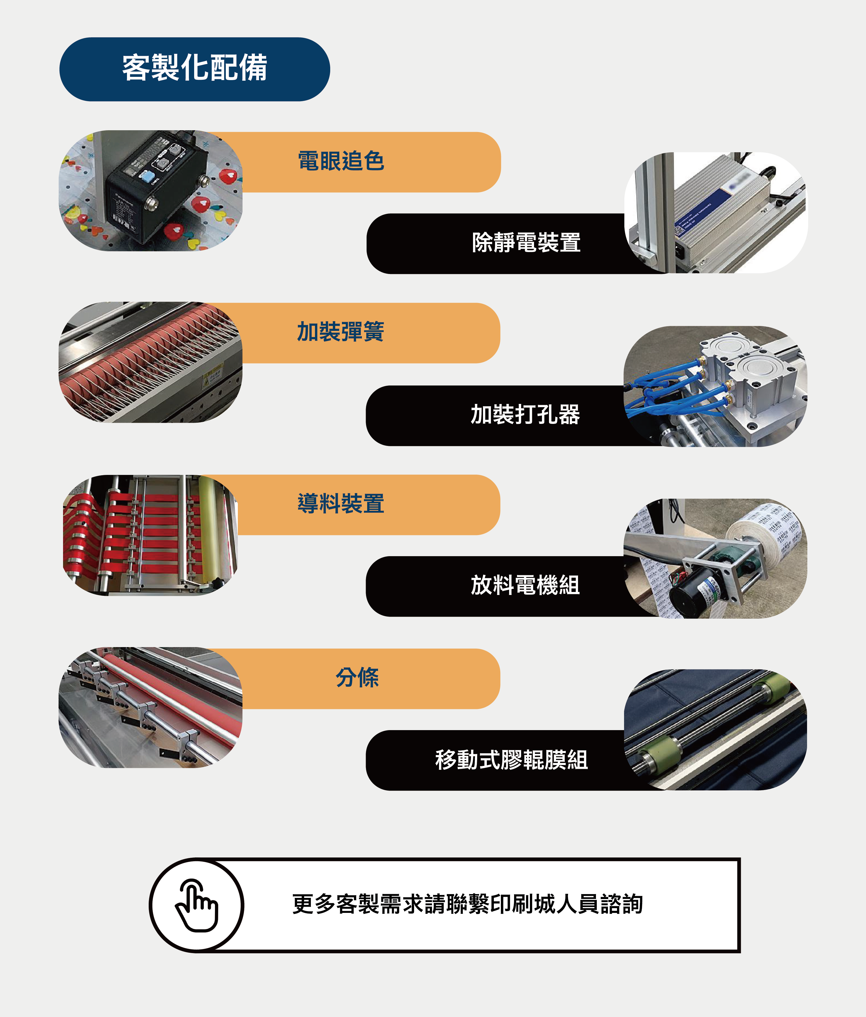 • 各類裁切機台型號之小型裁切機、大型裁切機可直接聯繫印刷城人員諮詢