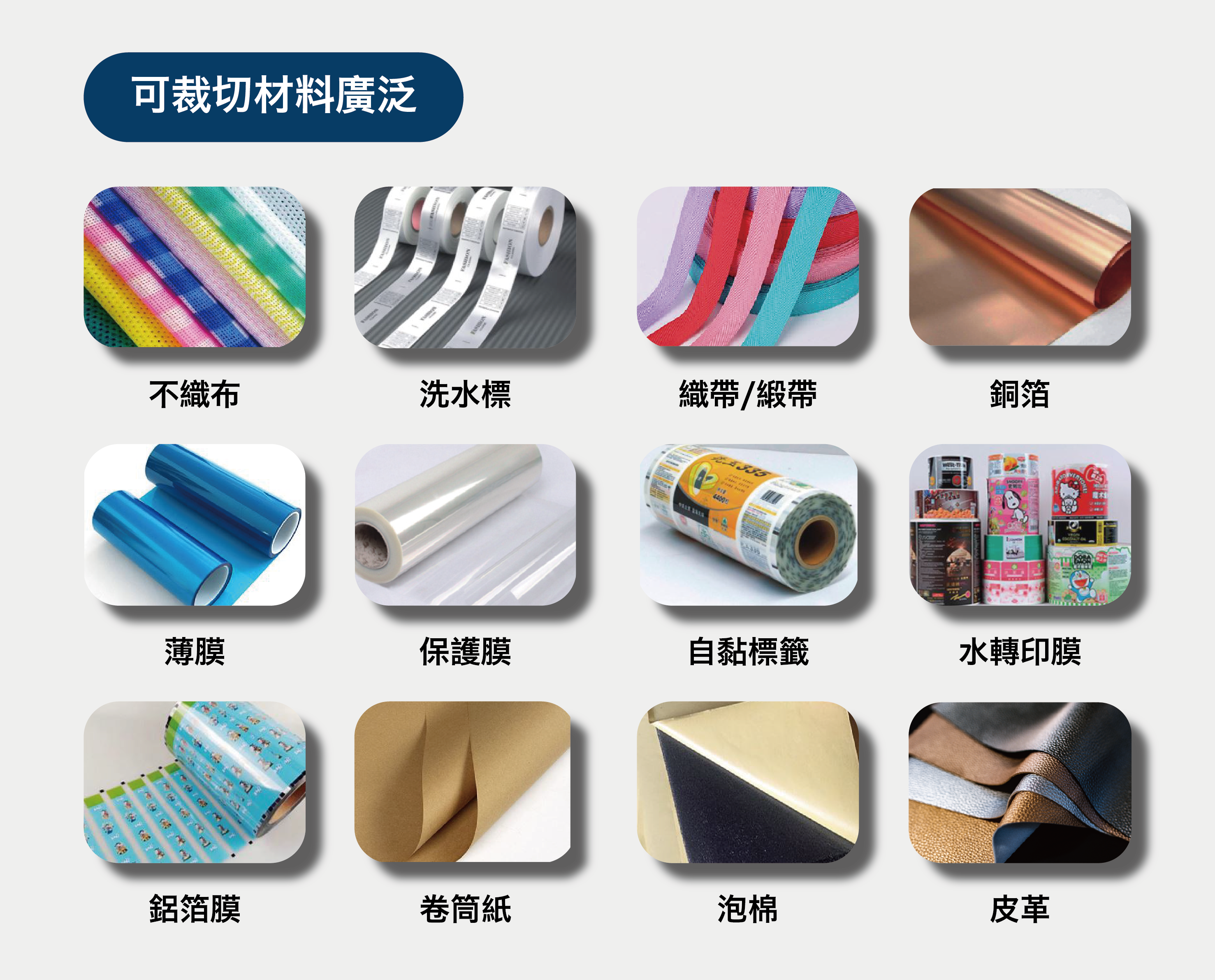 • 適用範圍廣,各種材質捲筒材料均可裁切